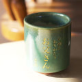 若草色の美しい色彩が魅力的な美濃焼の湯呑にオリジナルのデザインを彫刻!