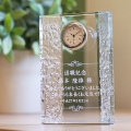 あなただけのオリジナルデザインを時計に彫刻できます。スッキリとしたスリムな形状と背面の波加工が美しい色彩を放つクリスタル時計です。自由に描いたイラストやロゴ、マークなどあなたのオリジナルデザインをクリスタル時計に彫刻すれば、世界でひとつだけの記念品になりますよ。記念碑や退職祝いなどお祝いシーンに活躍します。